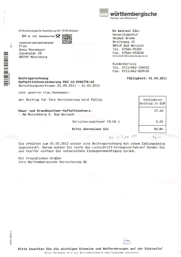 bereits bezahlte Haftpflichtversicherung